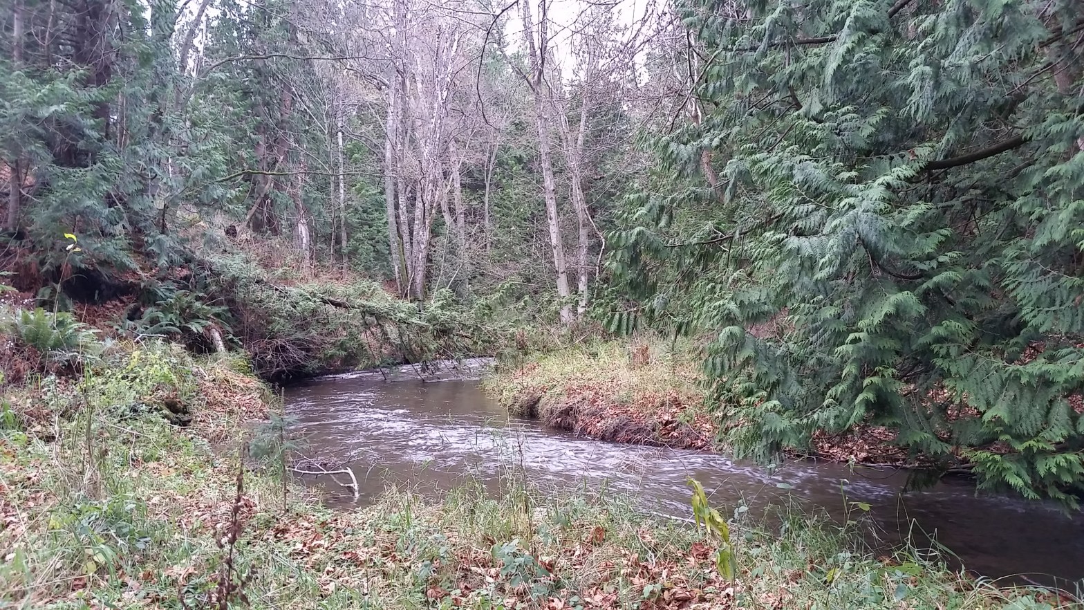Which brings me back to our own mini-water crisis. The day before our taps ran dry it rained all day, a heavy steady rain, unceasing for 24 hours. That rain fell on already saturated soil, with a water table at or near the surface, so there was nowhere for the water to go but downhill. There’s a gentle little creek that runs through the back of our property that rises to 16 inches at its most raging. 100 yards downstream of our property, it runs through an enormous culvert ~6 ft. in diameter underneath a road and out the other side, where it continues on its gentle way to Bellingham Bay.