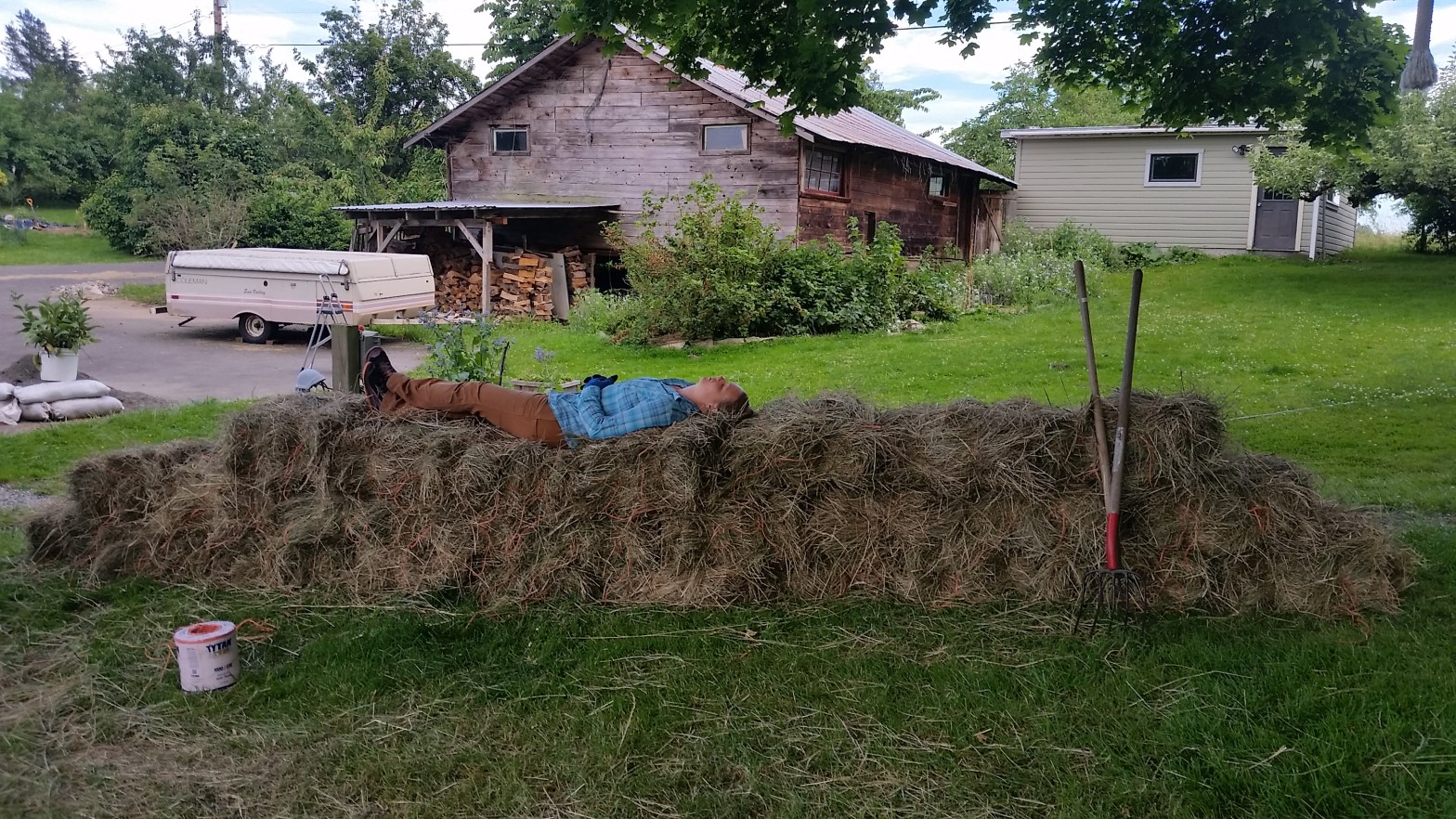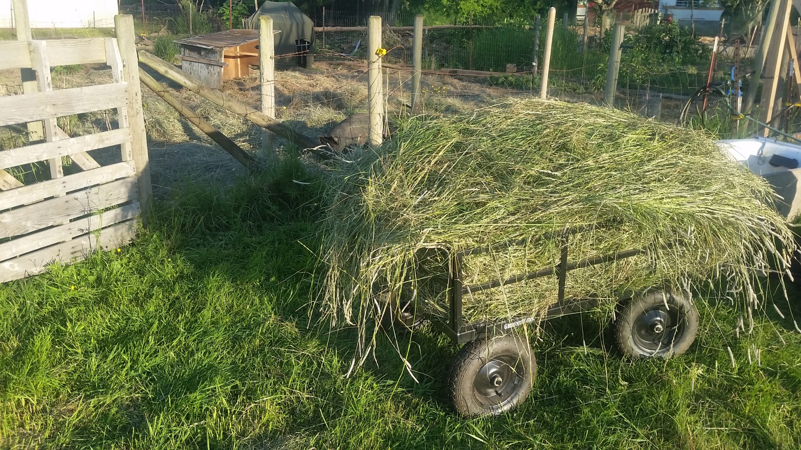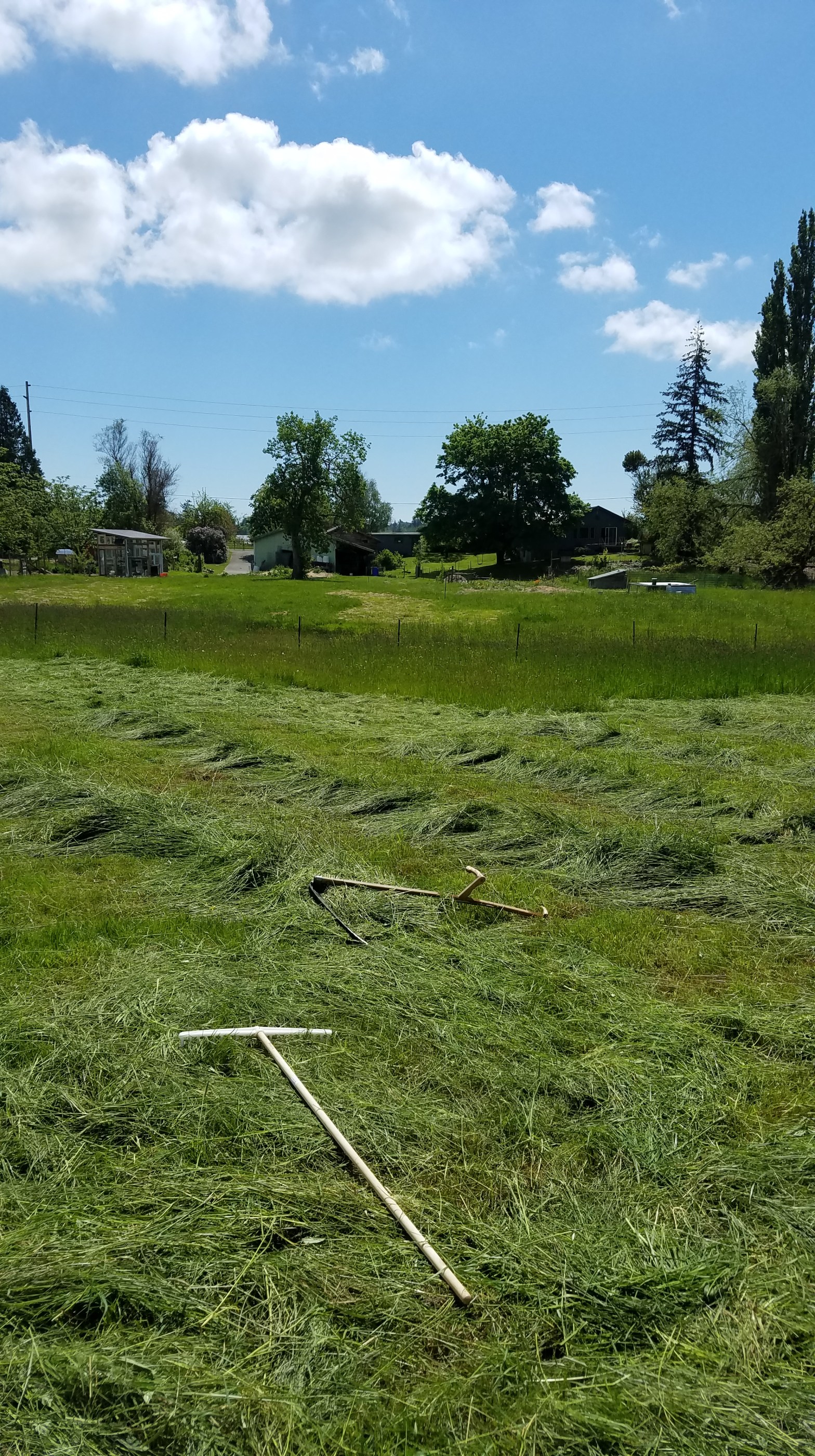 My previous batch of hay got spoiled by rains while still in the field, although it did get used as compost and mulch, so not it was not a total loss. Last week, with a clear forecast and some time off from the day job, I spent two mornings scythe cutting and a half hourContinue reading “Better weather for hay making and ultralight bales.”